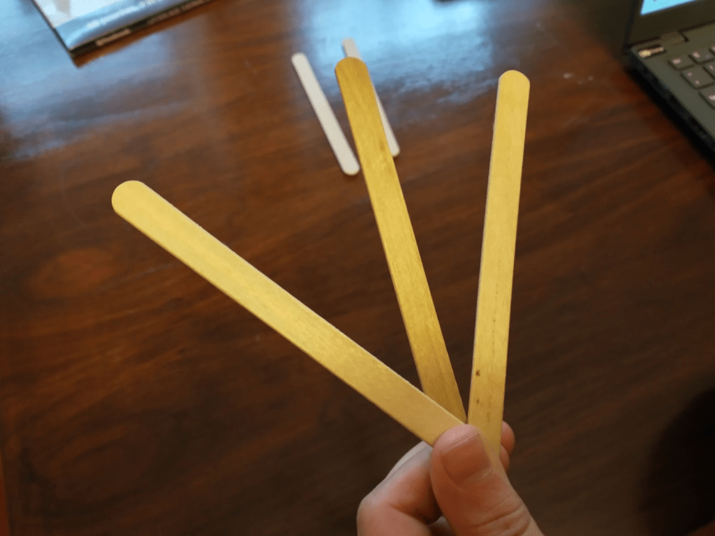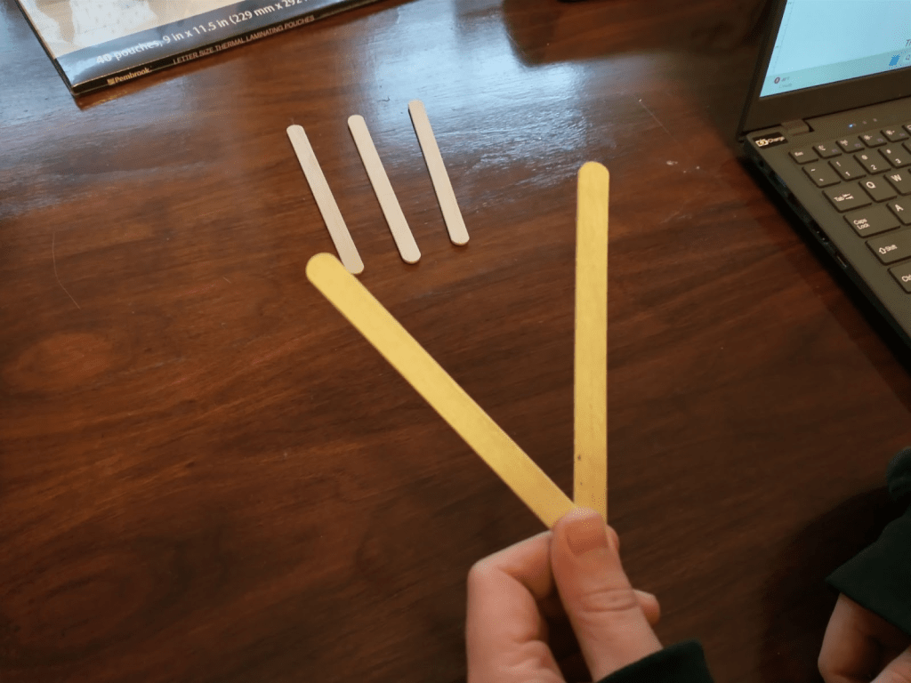 The first thing you have to do is make a V shape with 2 of your popsicle sticks.